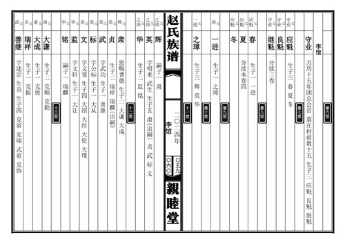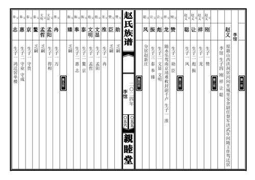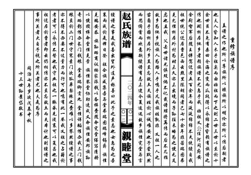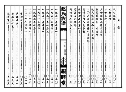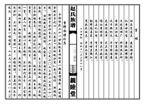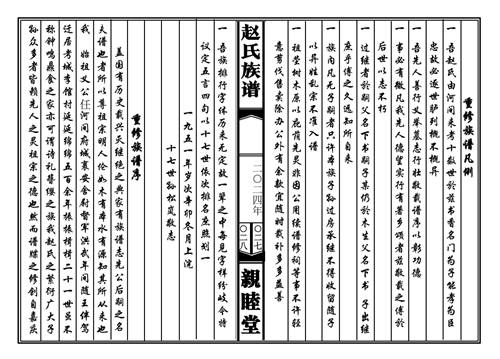 民权赵氏族谱 发生在河北平原的地道战妇孺皆知。然而,在豫鲁交界处的河南省民权县北关镇李馆村发生的地道战却鲜为人知。因为抗日武装力量利用地道作战,在抗日战争时期,这里成了日本鬼子和伪军的梦魇之地。解放战争时期,当地中共武装力量还利用李馆地道成功转移了李先念、魏凤楼等军事将领。李馆村分东西村,计三千余口,赵氏有一千三百人。上次续读距今已二十七年。因看到本村韩氏2023年续修的族谱质量较好,故联系到了我们,经半年的反复校对,于2024年4月21日请谱。 赵氏族谱原样式为行传,世系多有紊乱,父子关系不清,今我们使用数据库录入,查出较多错漏之处,经多次校对,终于成稿,始赵氏宗亲感到满意。赵氏族谱由赵松如主编,内容包括先祖像赞、历次谱序、各村简介、世系等。宣纸印刷,大16开,六眼仿古线装,全一卷,225个筒子页,印数320。 ...