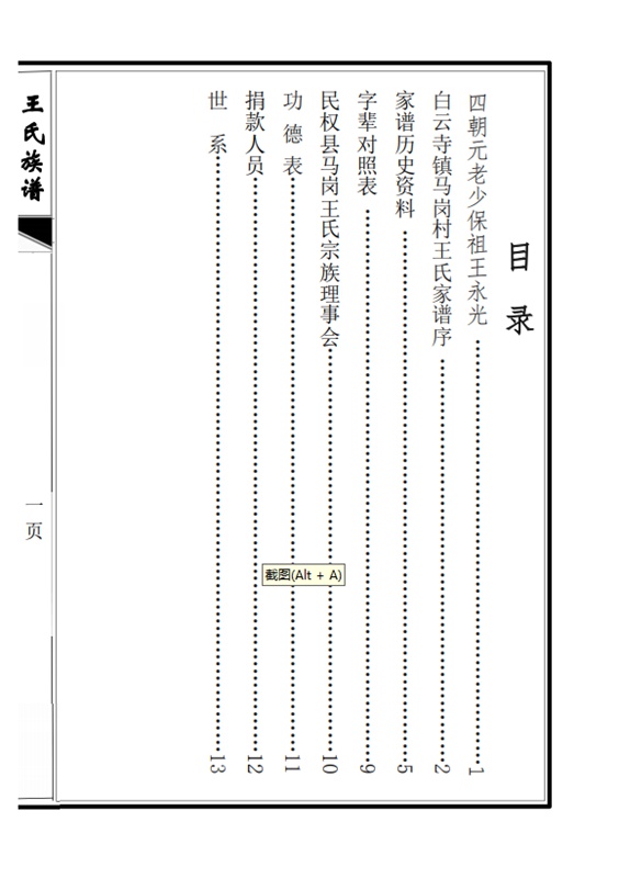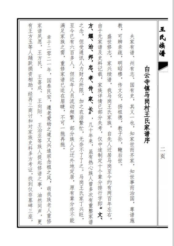 民权白云寺镇马岗村王氏族谱